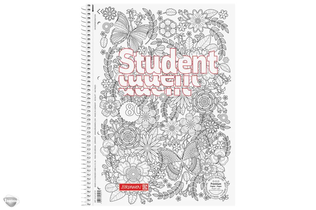 Collegeblock Premium Student „Schmetterling“ A4, Lineatur 28, 80 Blatt, weiß