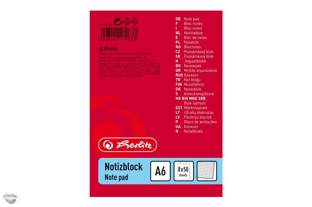 Startseite» +++ non food +++» Büroartikel» Briefumschläge» Herlitz Haushaltsnotizblock A6 kariert (8x50Blatt)