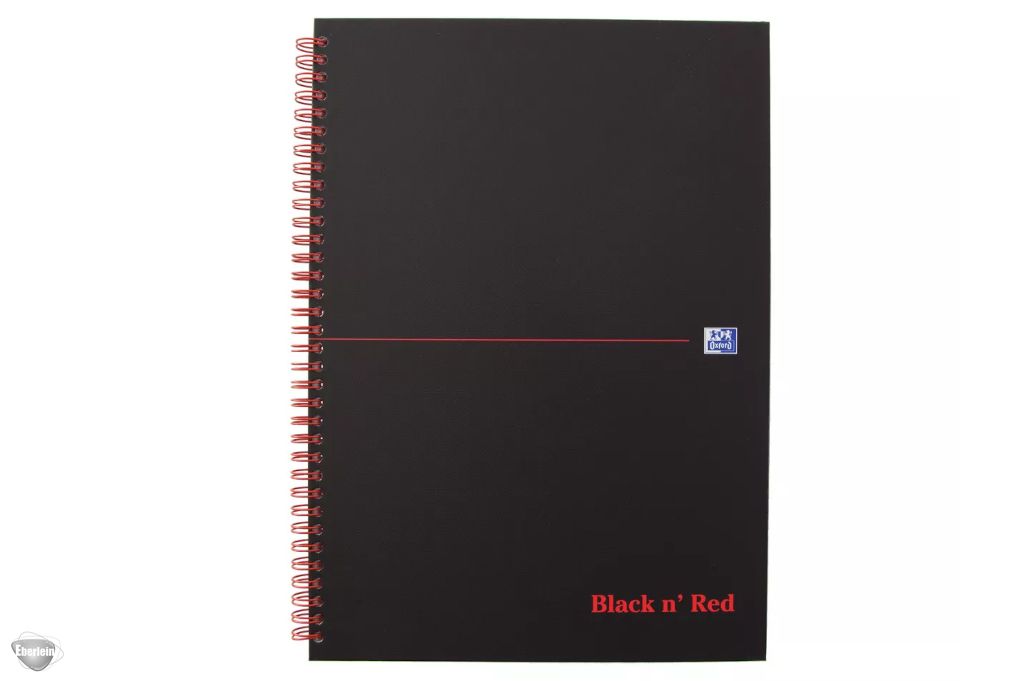 -Rote Doppelspirale, 70 Blatt, Schwarzes Cover mit festem Deckel.