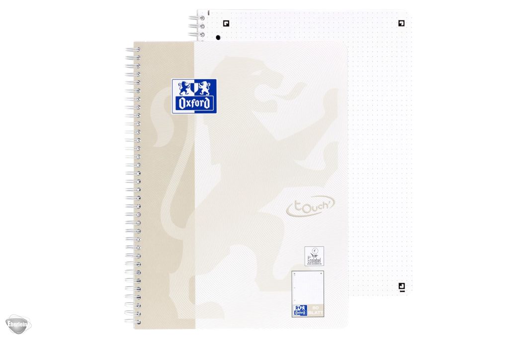 Hochwertiger, punktkarierter Oxford TOUCH-Collegeblock im Format A4, veredelt mit der einzigartigen, matten TOUCH-Haptik, mit 80 Blatt (160 Seiten) seidenglattem, hochweißen Optik Paper.