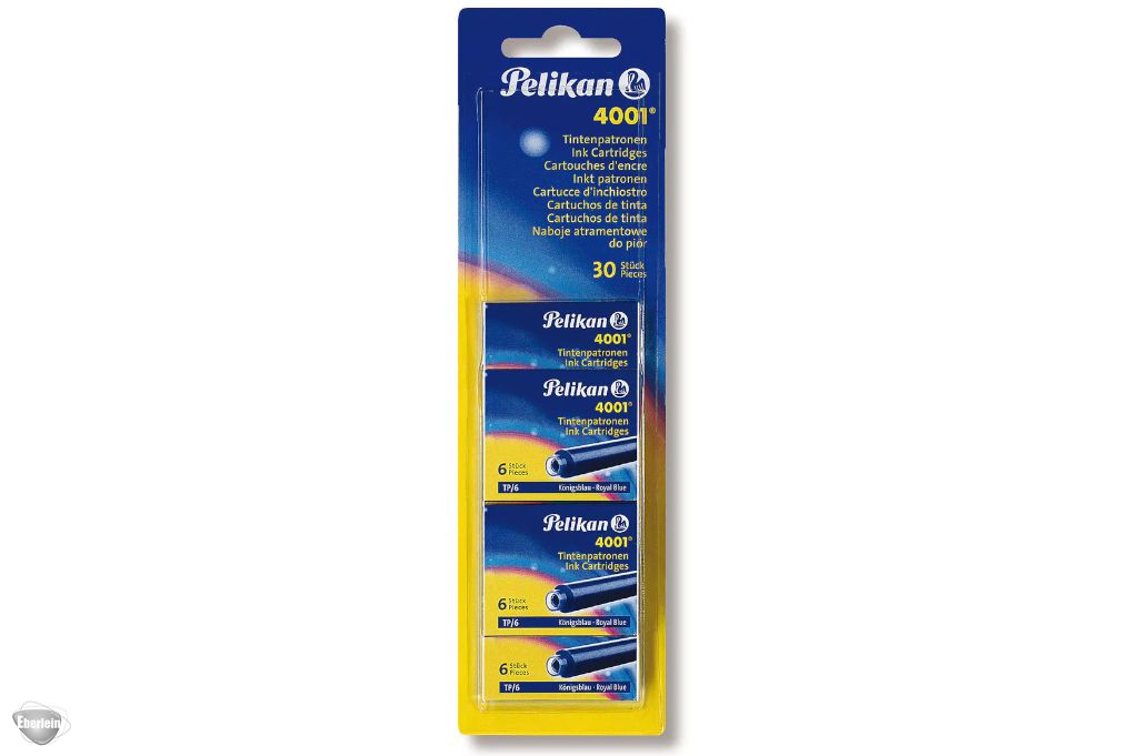 Großraum-Tintenpatronen für alle Pelikan- und viele andere Patronen-Füller. Königsblaue Tinte ist löschbar und auswaschbar.