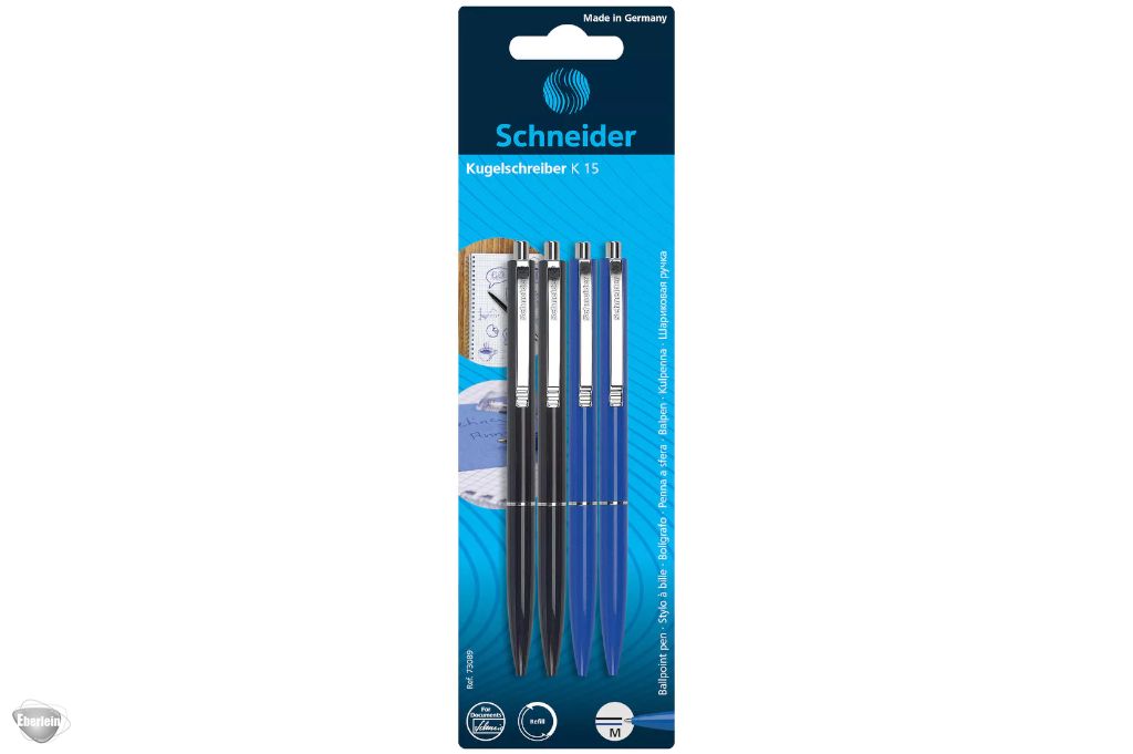 Schlanker Kugelschreiber mit stabilem Metallclip und Metalldrücker - millionenfach bewährt und beliebt. Gehäusefarbe schwarz und blau, Schreibfarbe schwarz und blau. Mit auswechselbarer Mine M mit verschleißfester Edelstahlspitze, dokumentenecht nach ISO 12757-2.