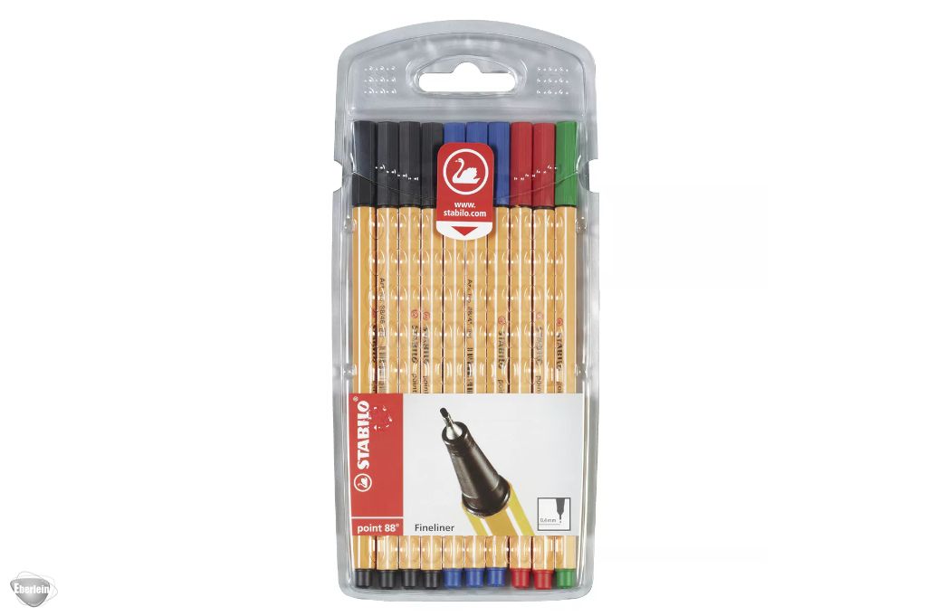Fineliner STABILO point 88 Office 4x schwarz, 3x blau, 2x rot, 1x grün Office -Europas Fineliner Nr. 1