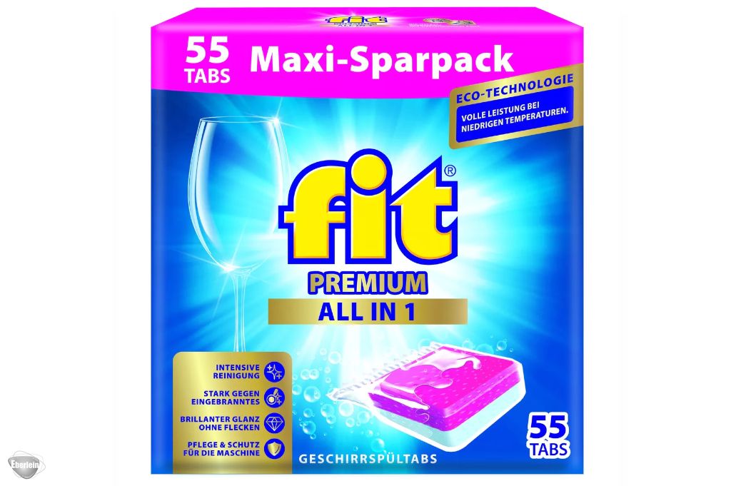All-in-One Tabs mit den Funktionen: Reiniger, Klarspüler, Salzfunktion, Glasschutz, Entkruster, Geruchsneutralisator, Schnellöseformel, Maschinenhygiene, Bleichsystem, Schnelltrockenfunktion und Eco-Technologie