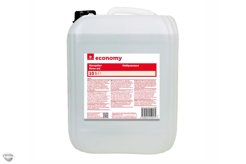 Neutraler universell einsetzbarer Klarspüler für gewerblicheGeschirrspülmaschinen. Wirksam in hartem und weichem Wasser. Entspanntdas Wasser und sorgt für fleckenlosen Glanz. Verhindert Kalkablagerungenauf dem Geschirr und in der Maschine.