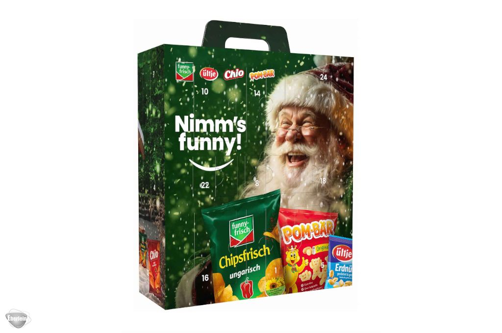 Adventskalender mal anders: Leckerer Knabberspaß für gemütliche Abende und für Zwischendurch. Intersnack - der Knabber-& Chips-Adventskalender, gefüllt mit verschiedenen Knabberartikeln aus dem Hause Intersnack (Chio, Ültje, Funny Frisch, Pom Bär). Eine tolle Vielfalt in kleinen Portionsbeuteln