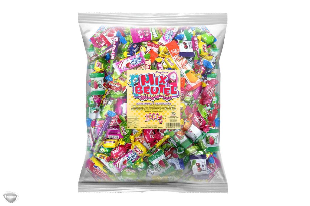 Eine kunterbunte Mischung aus Kaubonbons und Kaustreifen, die Groß und Klein begeistert. Mit vielfältigen Geschmacksrichtungen und jeder Menge Abwechslung wird jede Portion zum kleinen Genussmoment. Perfekt für Partys, Halloween, Karneval, Fasching, St. Martin, die Schultüte oder einfach als süßer Vorrat für zu Hause. Jedes Stück ist einzeln verpackt - praktisch und ideal zum Teilen. Ein ganzes Kilo fröhlicher Naschspaß, der garantiert für gute Laune sorgt.