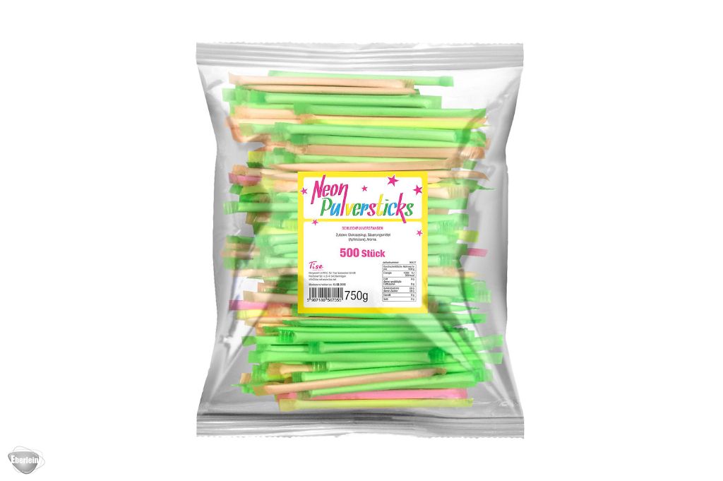 Bunt, spritzig und voller Energie: Die Neon Pulversticks bringen Farbe und Spaß in jeden Moment. Jedes der 500 einzeln verpackten Sticks enthält fruchtig‑prickelndes Brausepulver. Perfekt für Partys, Karneval, Fasching, Halloween, Schultüten, Kindergeburtstage oder als fröhliches Giveaway im Kassenbereich. Ein leuchtender Klassiker, der garantiert auffällt.