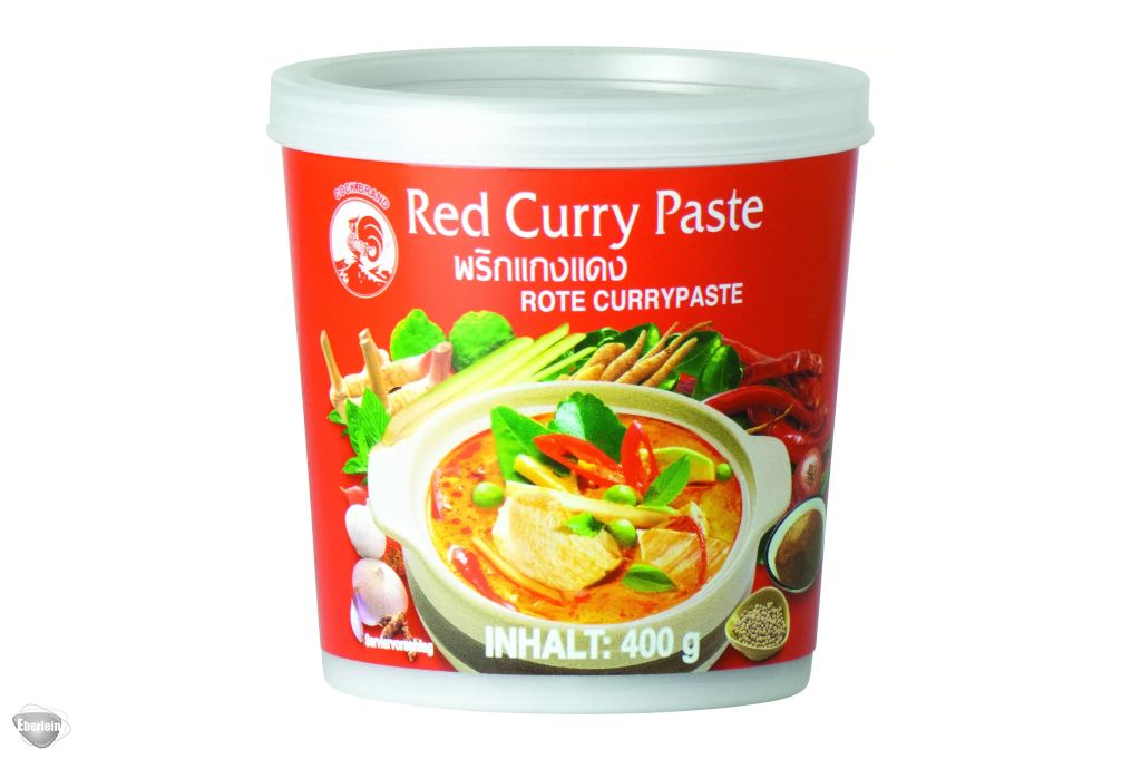 Die rote Currypaste von Cock aus Thailand ist ein Muss für die echte asiatische Küche. Und ohne Geschmacksverstärker! Insbesondere für die klassischen indischen oder thailändischen Curry-Gerichte mit Reis perfekt geeignet, um ihnen das gewisse scharfe Etwas zu verleihen. Kombiniert mit Kokosnussmilch ergibt die Currypaste eine feurige, würzige, jedoch immer unwiderstehliche Wok-Sauce. Auch zum Marinieren von Fleisch sehr zu empfehlen!