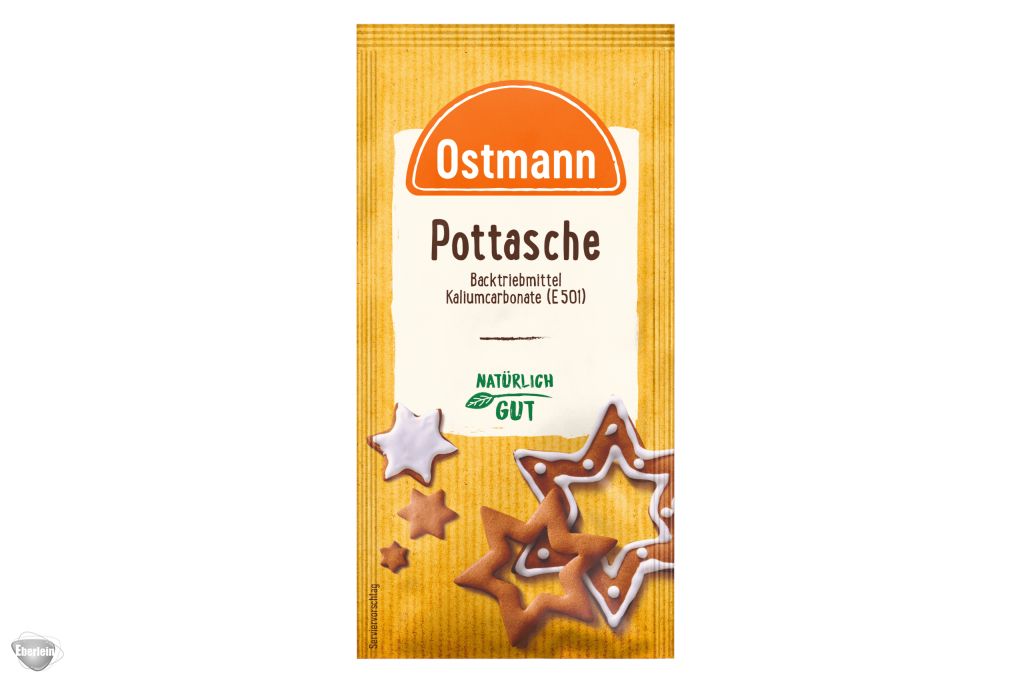 Ostmann Pottasche wird als Backtriebmittel mit charakteristischem Geschmack speziell zur Lockerung von solchen Teigen eingesetzt, die einen hohen Zuckergehalt haben und als Flachgebäck verarbeitet werden (z. B. Honigkuchenteige). Diese Teigarten lässt man gerne einige Stunden oder Tage ruhen (kühl und zugedeckt), da die Pottasche in dieser Zeit die typische Lockerung des Teiges bewirkt.