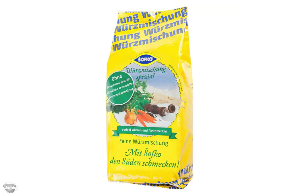 SOFKO Würzmischung Spezial - ist eine leckere Mischung aus Salz, getrockneten Gemüsen, Kräutern und Gewürzen ohne Zugabe von Geschmacksverstärkern, Farb- und Aromastoffen. Dafür enthält das Produkt noch mehr wertvolles Gemüse.