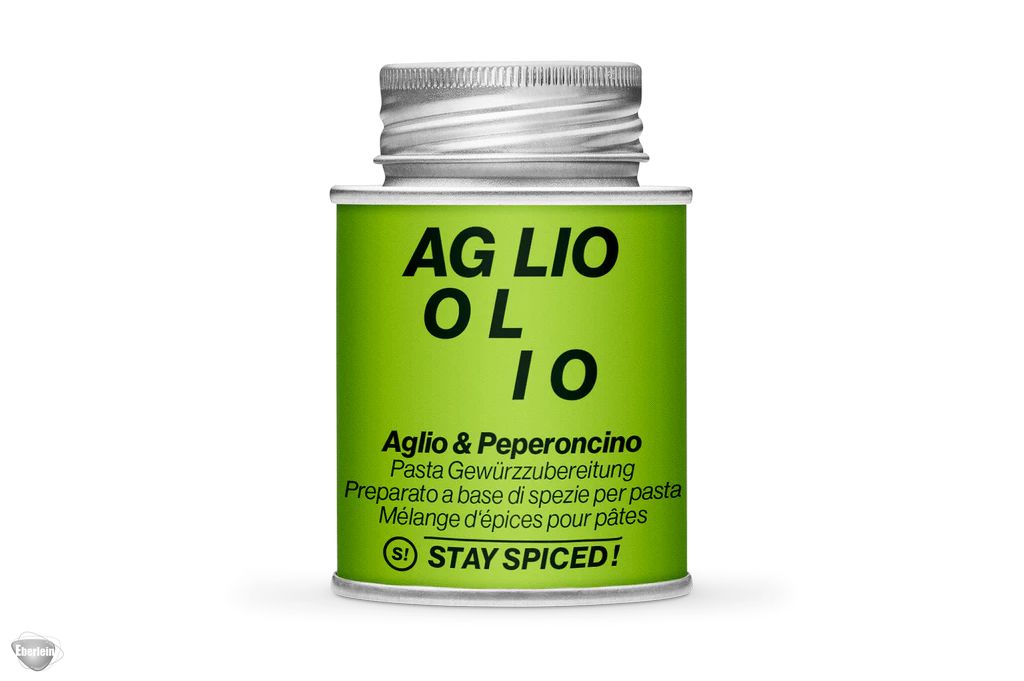 Die STAY SPICED ! Gewürzmischung Aglio & Peperoncino ist perfekt für zahlreiche Pasta-Variationen. Kalte Nudelsalate mit heiß angerührtem Aglio & Peperoncino mariniert sind der Knaller für jede Gartenparty. Außerdem bringt die Gewürzmischung auch einen ordentlichen Geschmackskick auf mediterranes Gemüse wie Auberginen und Zucchini, in Sugos oder auch auf Fleisch, Fisch und Garnelen.