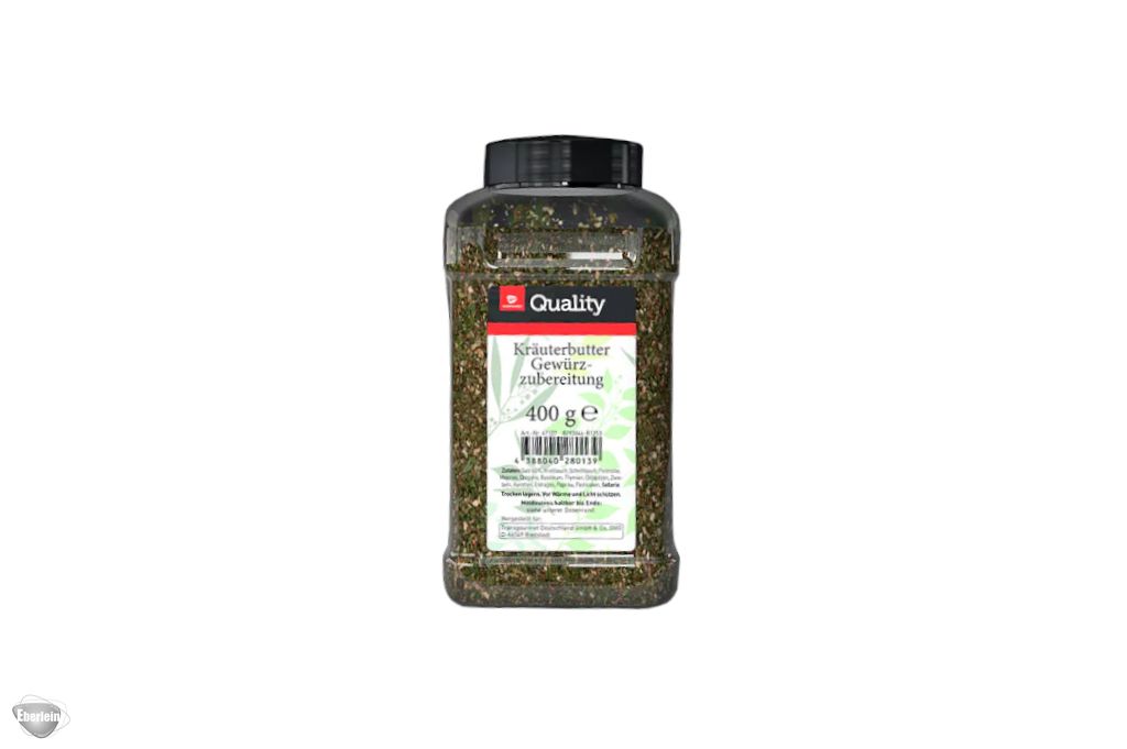Mischung aus Salz, Knoblauch, Schnittlauch, Petersilie, Majoran, Oregano, Basilikum, Thymian, Dillspitzen, Zwiebeln, Karotten, Estragon, Paprika, Pastinaken und Sellerie, ideal für würzig-frische Kräuterbutter