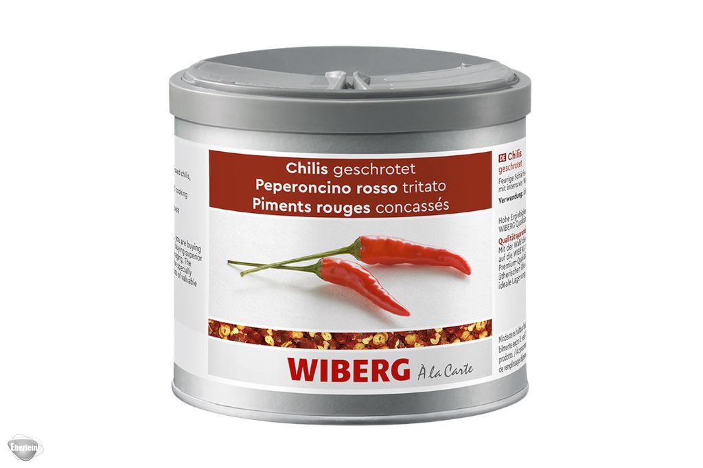 Das als scharfe Schote bei uns berühmt und berüchtigte Gewürz hat eine jahrtausendelange Tradition hinter sich. In der Küche kann Chili auf vielfältigste Weise verwendet werden und wird in den vielen Regionen der Welt abwechslungsreich kombiniert und eingesetzt. Mittlerweile sind durch Züchtung und Kreuzungen über 2.000 verschiedene Chili-Sorten entstanden – vom milden Paprika bis hin zur extrem scharfen Schote. Sie unterscheiden sich in ihrer Buntheit, Form (von bauchig-kugelförmig bis lang und spitz) und Größe. Seine Schärfe verdankt die Verwandte des Paprika dem Stoff Capsaicin. Dieser ist fett- und alkohollöslich, übersteht Hitze und Kälte und wirkt konservierend. Chilis geschrotet schmecken feurig scharf und gewährleisten intensive Würzkraft beim Einlegen und Mitkochen.