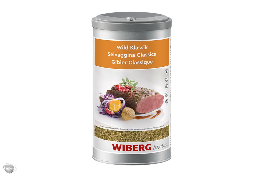 Für herzhafte Spezialitäten aus Wald und Wiese. Die Mischung aus hochwertigen Gewürzen und Kräutern – dafür aber ohne zugesetztes Salz – eignet sich ideal zum Marinieren und Würzen von Wild und Wildgeflügel sowie für kräftige Schmorgerichte. Tipp: Füllen Sie leere Teebeutel mit Wild Klassik, getrockneten, kleingehackten Pilzen oder Früchten, fixieren Sie daran einen Sternanis und servieren Sie den Würz-Beutel zu einer heißen Wild-Consommé. Die Gäste können ihre Bouillon dann ganz nach Belieben selbst abschmecken.