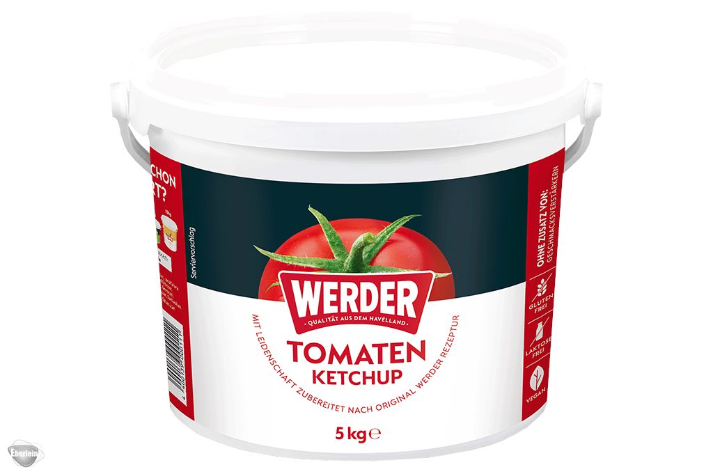 Profi-Qualität für zuhause & Gastro: Werder Tomaten Ketchup (5kg). Ergiebig, fruchtig-würzig und ohne künstliche Aromen. Der Klassiker im Großformat!