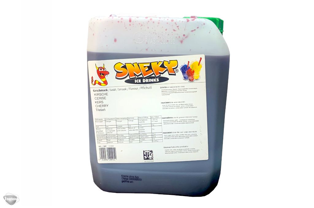 Sneky Ice Drinks Kirsch-Sirup - vollmundig, fruchtig und herrlich süß! Der intensive Kirschgeschmack macht jeden Slush, Cocktail oder Dessert zum roten Highlight. Ein Klassiker, der nie aus der Mode kommt!