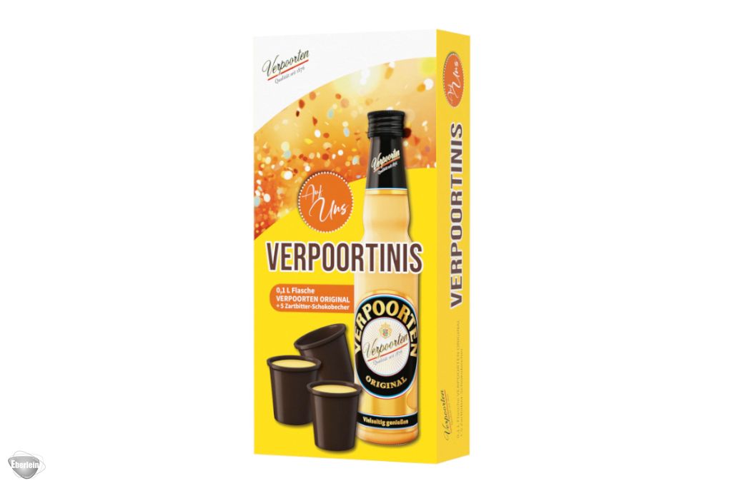 Der cremige Genuss von VERPOORTEN ORIGINAL in Kombination mit feiner Schokolade und das Ganze in einer praktischen Verpackung: Das sind die VERPOORTINIS. Die 0,1 L Flasche VERPOORTEN ORIGINAL verteilt sich dabei perfekt auf die dazugehörigen 5 Schokobecher, wodurch unsere VERPOORTINIS zur richtigen Wahl werden, wenn Menschen zusammenkommen und eine gute Zeit miteinander verbringen möchten. Ob zu Hause, unterwegs oder beim gemütlichen Picknick mit Freunden im Park - Sie entscheiden, wie und wo Sie die VERPOORTINIS genießen.