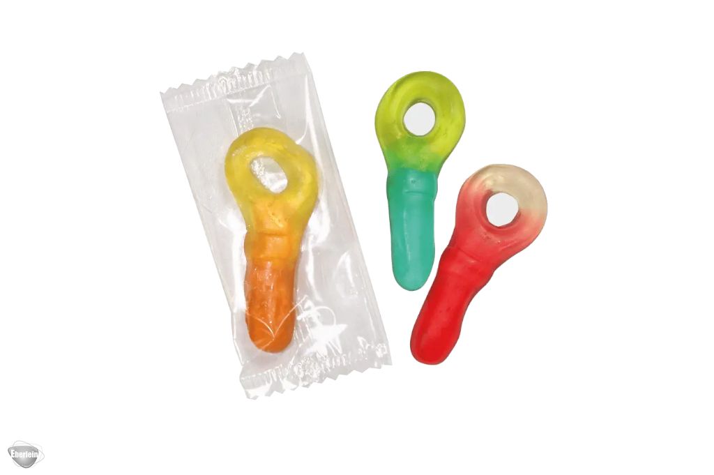 Diese Form ist allgemein bekannt. Ein Fruchtgummi mit weichem Biss und Fruchtgeschmack. Es gibt verschiedene Farbkombinationen.