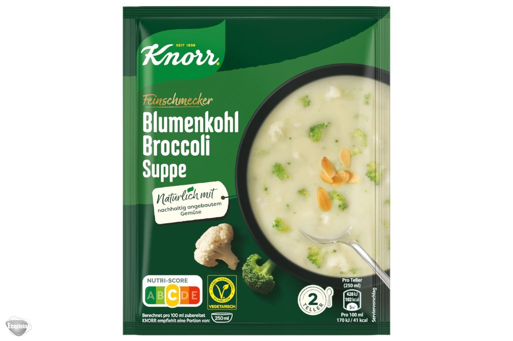 Extra große Blumenkohl- und Broccolistückchen in Kombination mit feinen Gewürzen - die cremige Blumenkohl-Broccoli Suppe schmeckt der ganzen Familie. Knorr Feinschmecker Suppen: Mit sorgfältig ausgewählten Zutaten und extra großen Gemüsestückchen für einen aromatischen Geschmack.