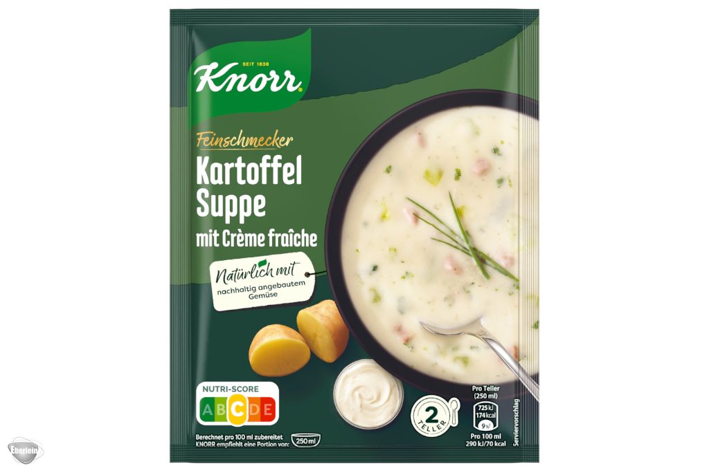 Die Kartoffelsuppe von Knorr ist eine cremige Fertigsuppe mit nachhaltig angebauten Kartoffeln, Zwiebeln und Lauch