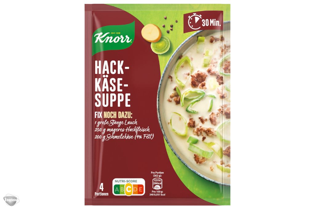 Knorr Fix Hack-Käse-Suppe ist fein abgestimmt mit Gewürzen und Lauch für eine herzhafte sowie cremig-zarte Suppe