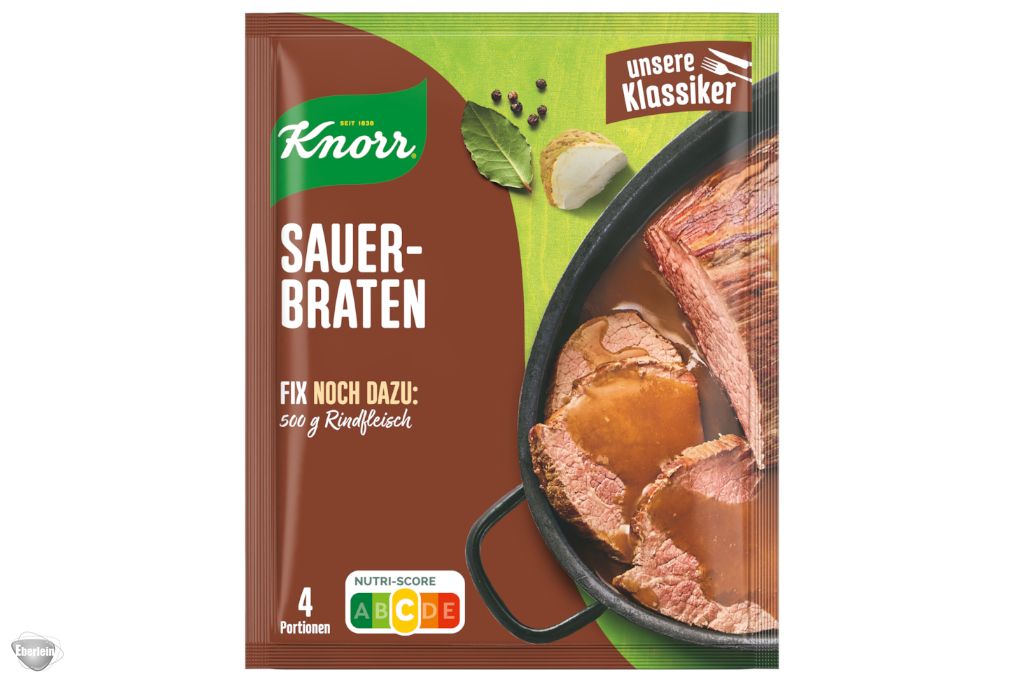 Ganz ohne einlegen! Saftiger Sauerbraten in einer Sauce aus Tomaten, Sellerie und Lorbeerblättern. Mit den Knorr Fix Produkten begeistern Sie Ihre ganze Familie. Mit der beliebten Würzbasis gelingen authentische und abwechslungsreiche Gerichte garantiert.