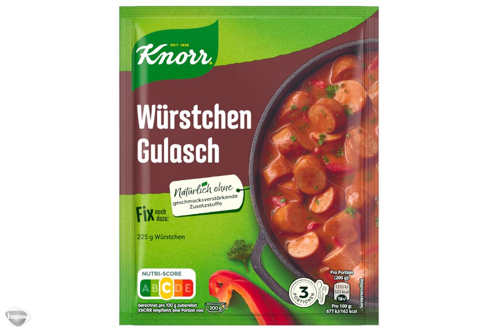 Knorr Fix Würstchen Gulasch ist herzhafter Genuss mit Tomaten, Paprika und Champignons. Mit den Knorr Fix Produkten die ganze Familie begeistern. Mit der beliebten Würzbasis gelingen authentische und abwechslungsreiche Gerichte garantiert.