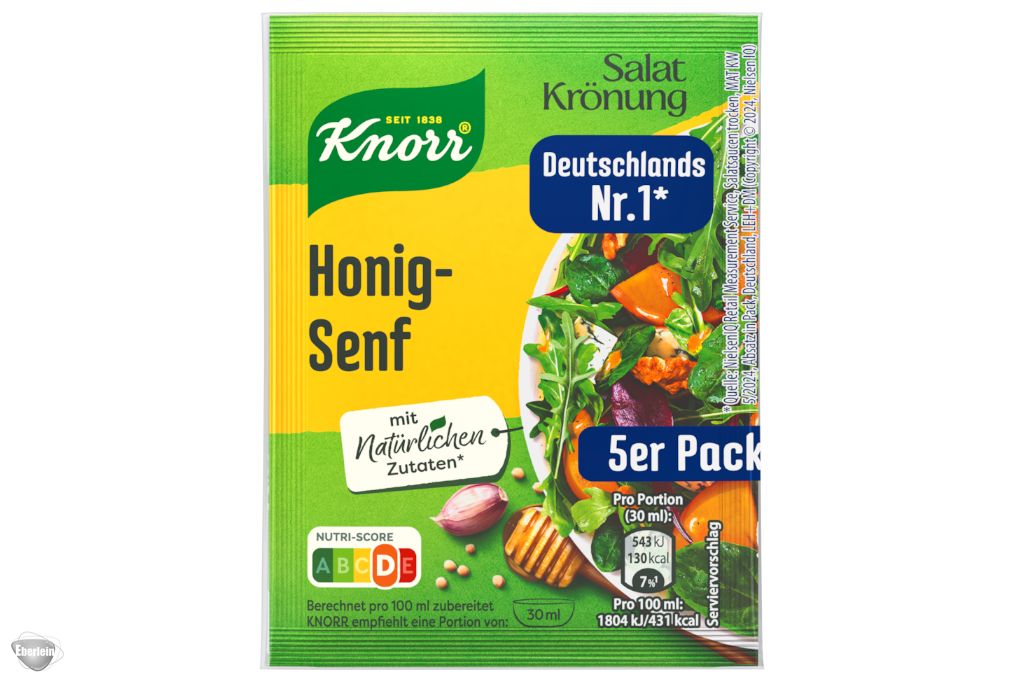 Schon probiert? Knorr Salatkrönung Honig-Senf ist mit köstlich süßem Honig und würzigem Senf verfeinert und garantiert feinsten Salatgenuss für zu Hause oder im Büro. Ideal für Ruccola, Eisbergsalat und Feldsalaten, und besonders lecker mit knackige