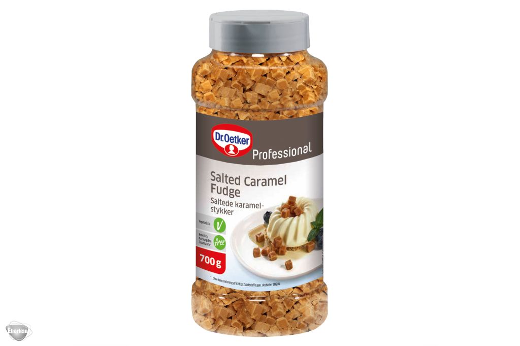 Die Dr. Oetker Professional Salted Caramel Fudge Stückchen vereinen cremige Süße mit feiner Salzkaramell-Note. Ideal zum Dekorieren, Verfeinern oder als köstlicher Snack für besondere Genussmomente.