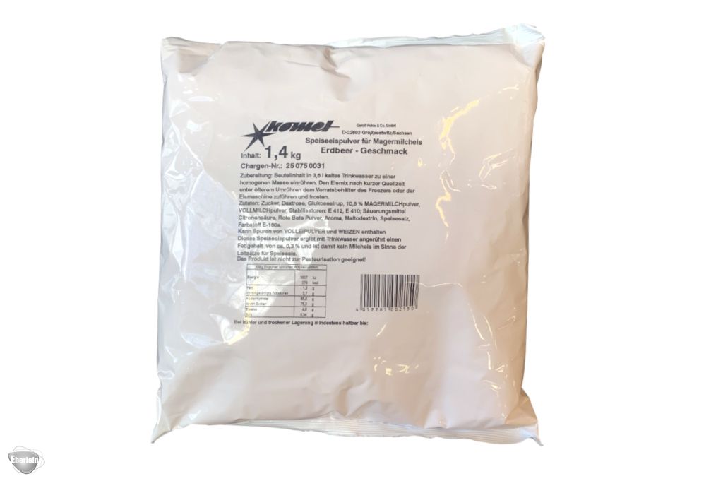 Seit über 90 Jahren steht Komet für Qualität und Tradition im Osten Deutschlands. Mit der Expertise in trockenen Mischungen bietet Komet Ihnen vielseitige Produkte - darunter auch das Erdbeer‑Pulver, das sich im Handumdrehen zubereiten lässt: Einfach mit Trinkwasser anrühren und schon entsteht eine perfekt abgestimmte Basis für cremiges Joghurteis.