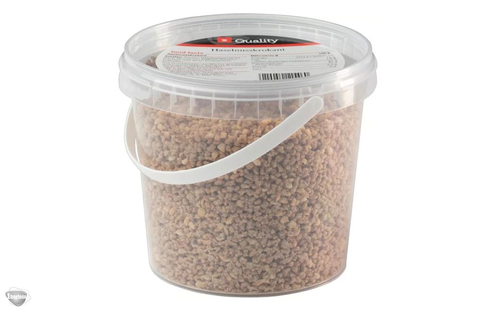 Haselnusskrokant (braune Stückchen ca. 2,5-4mm) im Eimer zum Dekorieren von Backwaren, Eis usw.