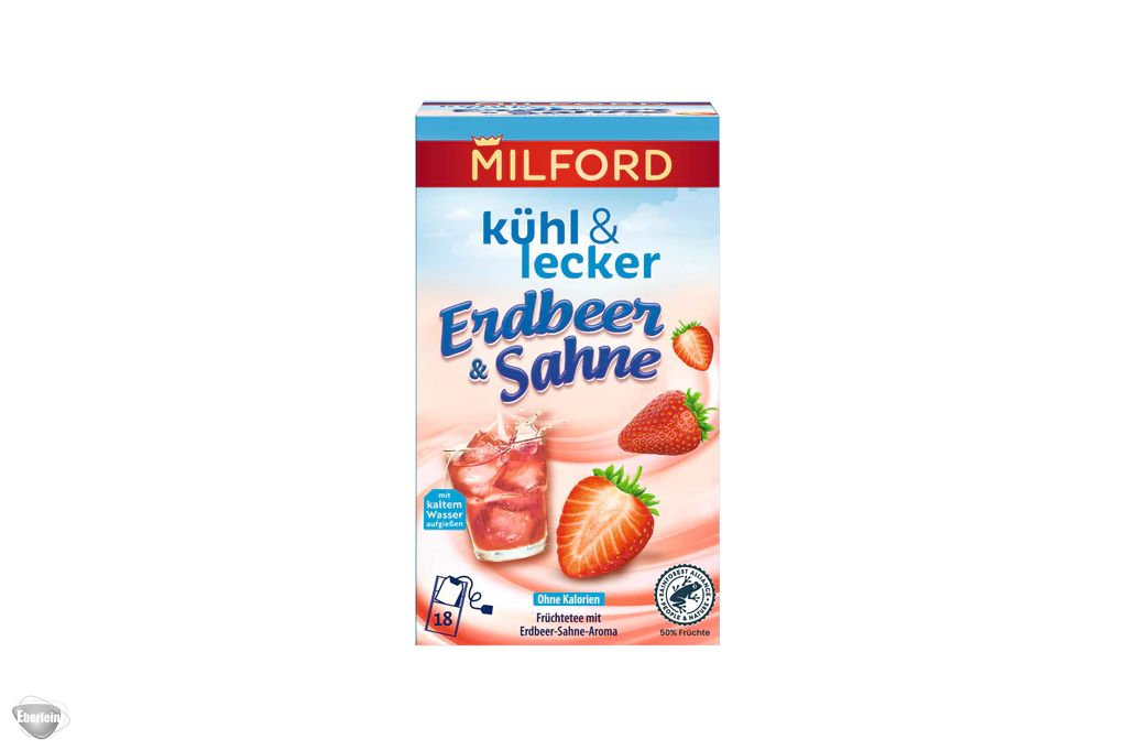 Das schmeckt nach Kindheit! Entdecke deine Lieblingsnaschereien von früher neu - mit MILFORD kühl & lecker. Hier trifft der Geschmack nach süßen Erdbeeren auf cremige Sahne - mmmhm, erste Sahne! Für Säuglinge und Kleinkinder nicht empfohlen.