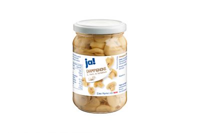 Ja! Champignons, 1. Wahl, in Scheiben geschnitten, eingelegt.