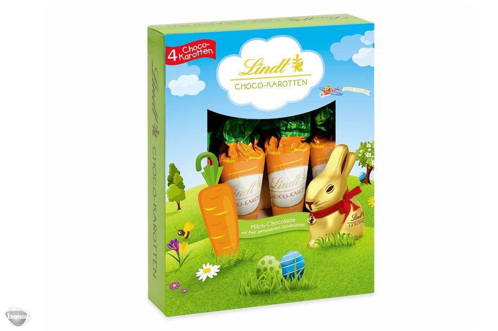 Extra für die Kleinen haben die Maîtres-Chocolatiers aus dem Hause Lindt diese besondere Schokoladen-Spezialität kreiert: 4 Choco-Karotten in Form eines Regenschirms aus Vollmilch-Schokoalde mit Nougat.