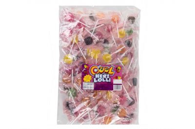 Der XXL Cool Herz Lolli Mix bringt Ihnen in einer extragroßen Packenung 6 verschiedene fruchtig leckere Geschmacksrichtungen: Apfel, Orange, Kirsche, Erdbeere, Cola und Zitrone nach Hause, welche in einer schlichten Herzform gestaltet sind.