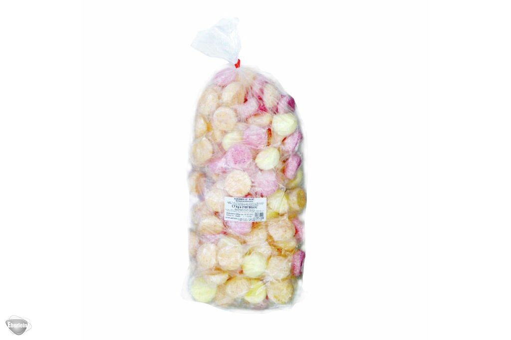 Kokosbälle bunt, 100 Stück im Beutel von Mellow Mellow sind köstliche Schaumzuckerwaren für die kleine Nascherei zwischendurch. Einzeln verpackt und ca. 6cm groß lassen sich die gelben, orangen und rosafarbenen Kokosbälle zu vielen Gelegenheiten als kleines Highlight hinzugeben.