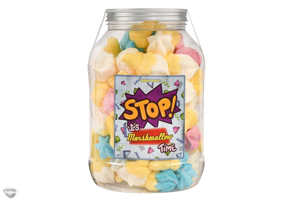 Schaumzucker-Eishörnchen in einer Kunststoff-Retrodose, farblich sortiert.