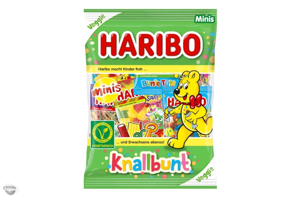 Teilen macht Freude - und Freunde. Mit HARIBO Knallbunt klappt das jetzt auch vegetarisch und vegan. Im bunten Mix der praktischen kleinen Tüten befinden sich Pasta Frutta-Minis, Bunte Tüte-Minis, S'ghetti-Minis, Balla-Balla-Minis und jede Menge gute Laune.