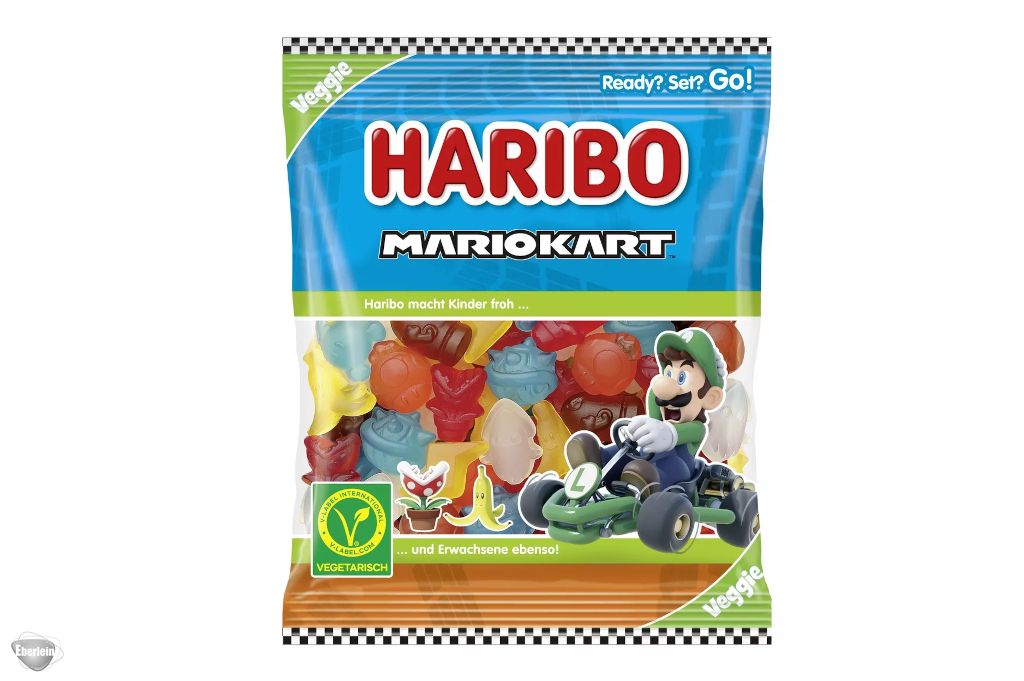 Die neue HARIBO Mario Kart Edition gibt‘s auch in vegetarisch! Luigis Edition bringt besonderen Naschspaß mit dem Turbo-Pilz, Kugelwilli, Blooper und mehr in fruchtigen Geschmacksrichtungen. Nur für kurze Zeit!