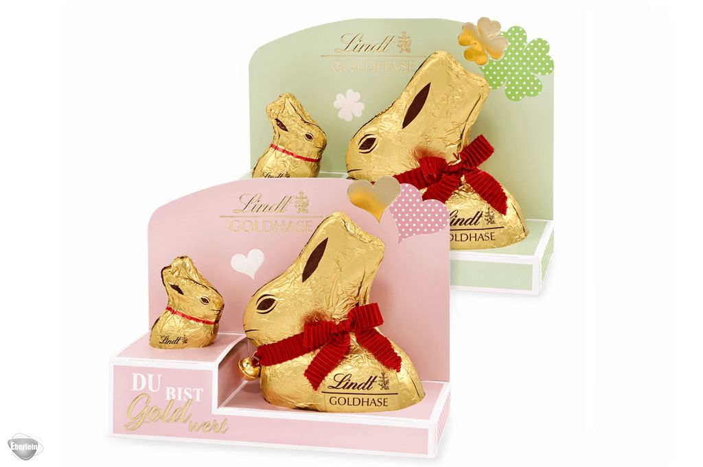 Ohne ihn wäre Ostern undenkbar. Seit Generationen erfreut der Goldhase von Lindt Groß und Klein und macht das Osterfest zu etwas ganz Besonderem. Sagen Sie es mit dem Goldhase von Lindt. Gerade zu Ostern möchten wir unseren Liebsten zeigen, wie sehr wir sie lieben und schätzen. In einer wunderschönen Doppelverpackung stecken der große und kleine Goldhase ihre Näschen zusammen und bieten somit eine tolle Gelegenheit, um zu sagen "Du bist mir Gold wert".