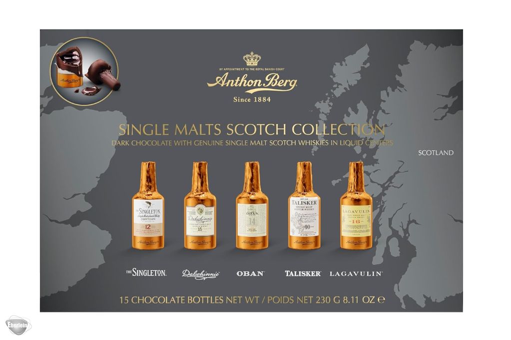Die kleinen Schokofläschchen von Anthon Berg mit einer ganz besonders edlen Füllung für echte Kenner! Der einzigartige Geschmack von Scotch Whiskeys, wie Talisker, Singleton, Oban, Lagavulin und Dalwhinnie, in einem Mantel aus hochwertiger dunkler Schokolade - ein besonderer Hochgenuss und das nicht nur für Whiskeyliebhaber!