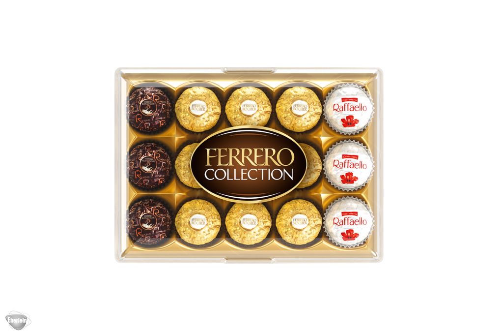 Enthalten sind 9x Ferrero Rocher, 3 x Raffaello, 3 x Rondnoir
