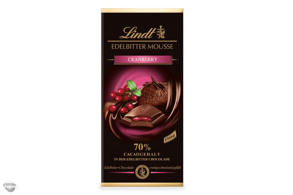 Ein besonders hoher Kakaoanteil von 70% in der Schokolade verleiht dieser feinen Edelbittertafel die typisch aromatische Note dunkler Schokolade, abgerundet durch eine Cranberry-Füllung auf dunkler Mousse au Chocolat. Cranberries werden hauptsächlich in den USA angebaut. Dort gehören sie in gekochter Form zu einer der beliebtesten Fruchtsorten. Ihr herb-süßer Geschmack harmoniert hervorragend mit der dunklen Mousse au Chocolat dieser Edelbitter-Kreation.