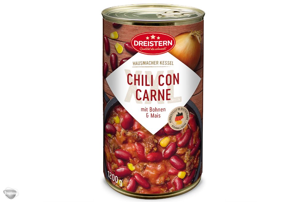 Feurig, sättigend und im XXL-Format: Der Dreistern Chili con Carne bringt 1,2 kg würzige Bohnen, zartes Fleisch und pikante Schärfe direkt auf den Tisch. Ideal für große Portionen voller Tex-Mex-Feeling - macht satt, wärmt und sorgt für Genussmomente mit Biss.