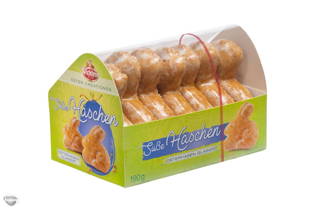 Weiches, saftiges Gebäck in drolliger Osterhasen-Form, überzogen mit feinem Zuckerguss. Diese Wicklein-Spezialität aus der neuen Oster-Creation bereichert jedes Osternest und ist ein besonderer Frühlings-Genuss für die ganze Familie.