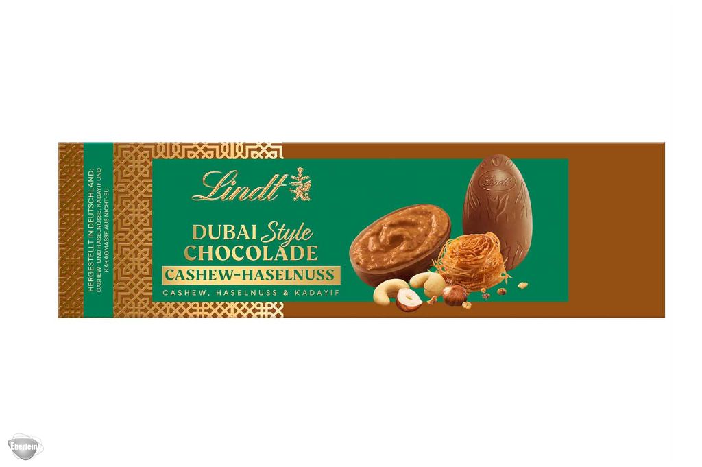 Die Lindt Dubai Style Chocolade Eier Cashew-Haselnuss bringen orientalische Raffinesse in die Osterzeit. In zarter Lindt-Vollmilchschokolade verbirgt sich eine fein abgestimmte Füllung aus cremiger Cashew-Haselnuss-Masse und knusprigen Kadayif-Fäden – inspiriert von beliebten Nahost-Desserts. Die edle Verpackung mit goldenen Akzenten macht diese Komposition zu einem besonderen Geschenk oder Highlight auf der Festtagstafel. Exklusiver Genuss für alle, die das Außergewöhnliche lieben.