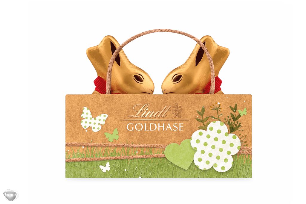 Verschenken Sie zu Ostern die Natur Edition Tasche, die 2 mal den 50g GOLDHASEN Vollmilch enthält.
