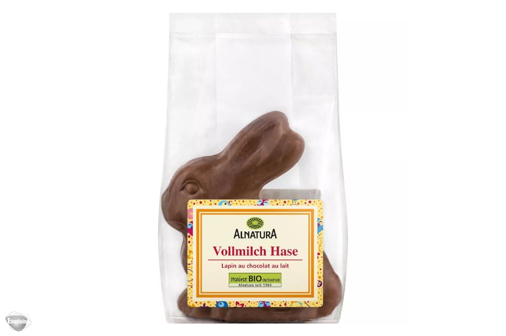 Dieser Osterhase aus zarter Vollmilchschokolade darf in keinem Osternest fehlen. Alle Zutaten des Alnatura Vollmilch-Hasen – Kakaobutter und -masse, Rohrohrzucker sowie Vollmilchpulver – stammen aus Bio-Landwirtschaft. Er wird zudem ohne Lecithine hergestellt.