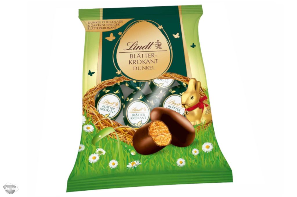 Die Lindt Blätterkrokant-Eier Dunkel stehen für intensiven Schokoladengenuss mit raffinierter Knuspernote. Die edle dunkle Schokolade wird durch gemahlene Haselnüsse verfeinert und umhüllt eine Füllung aus knusprigem Blätterkrokant. Das Zusammenspiel von herber Kakaonote und karamelligem Crunch sorgt für ein geschmackliches Erlebnis, das perfekt in die Osterzeit passt. Eine stilvolle Ergänzung für jedes Osternest – oder ein kleiner Genussmoment für sich selbst.